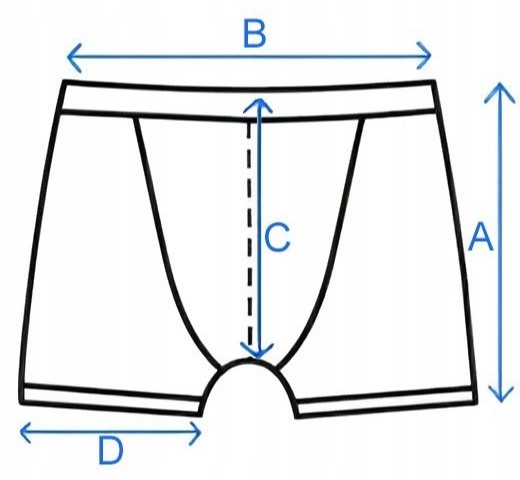 Bokserki męskie bawełna 95%, elastyczne (5% spandex) firmy Ideal. Wymiary podane są bez rozciągania materiału.