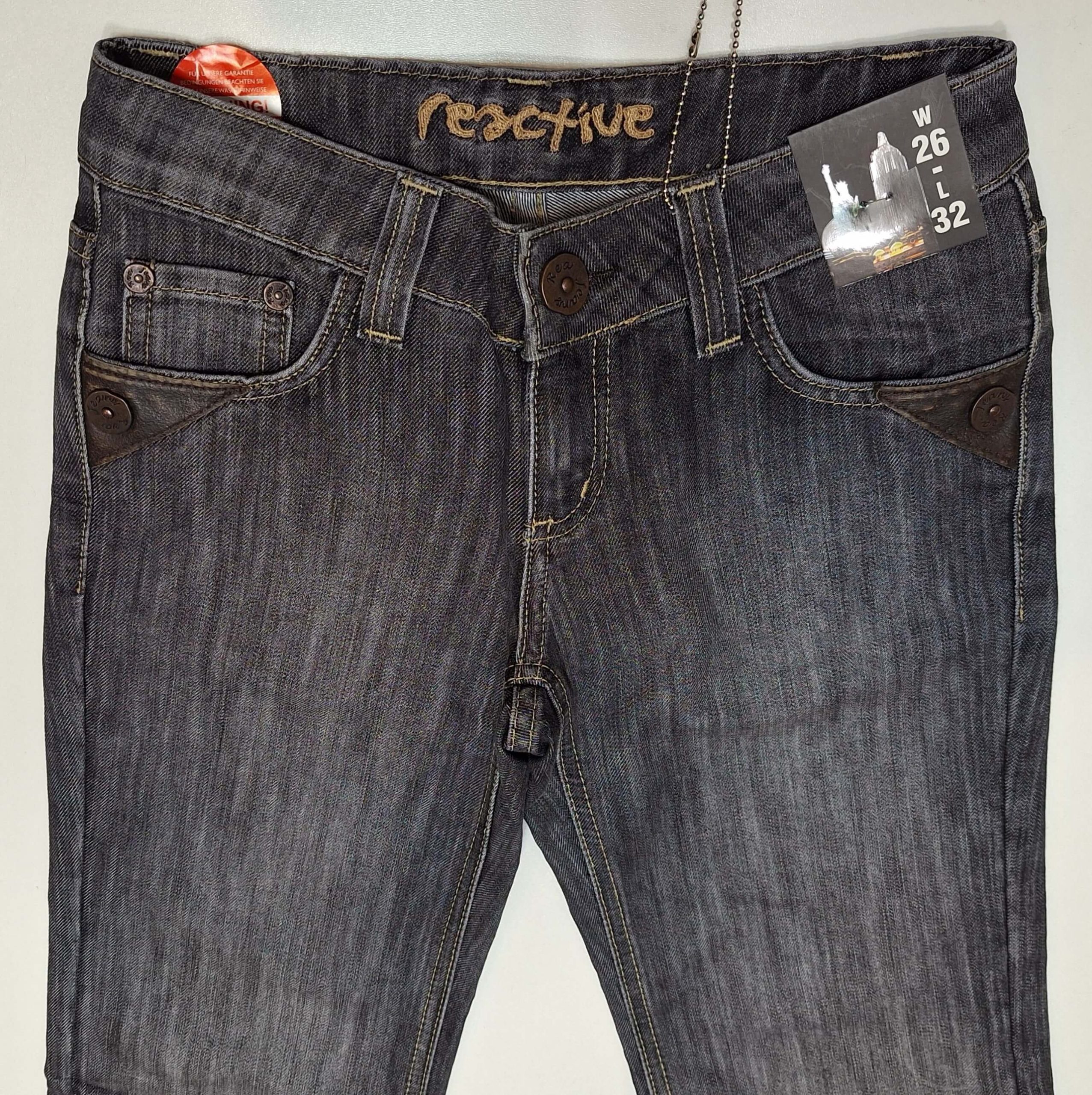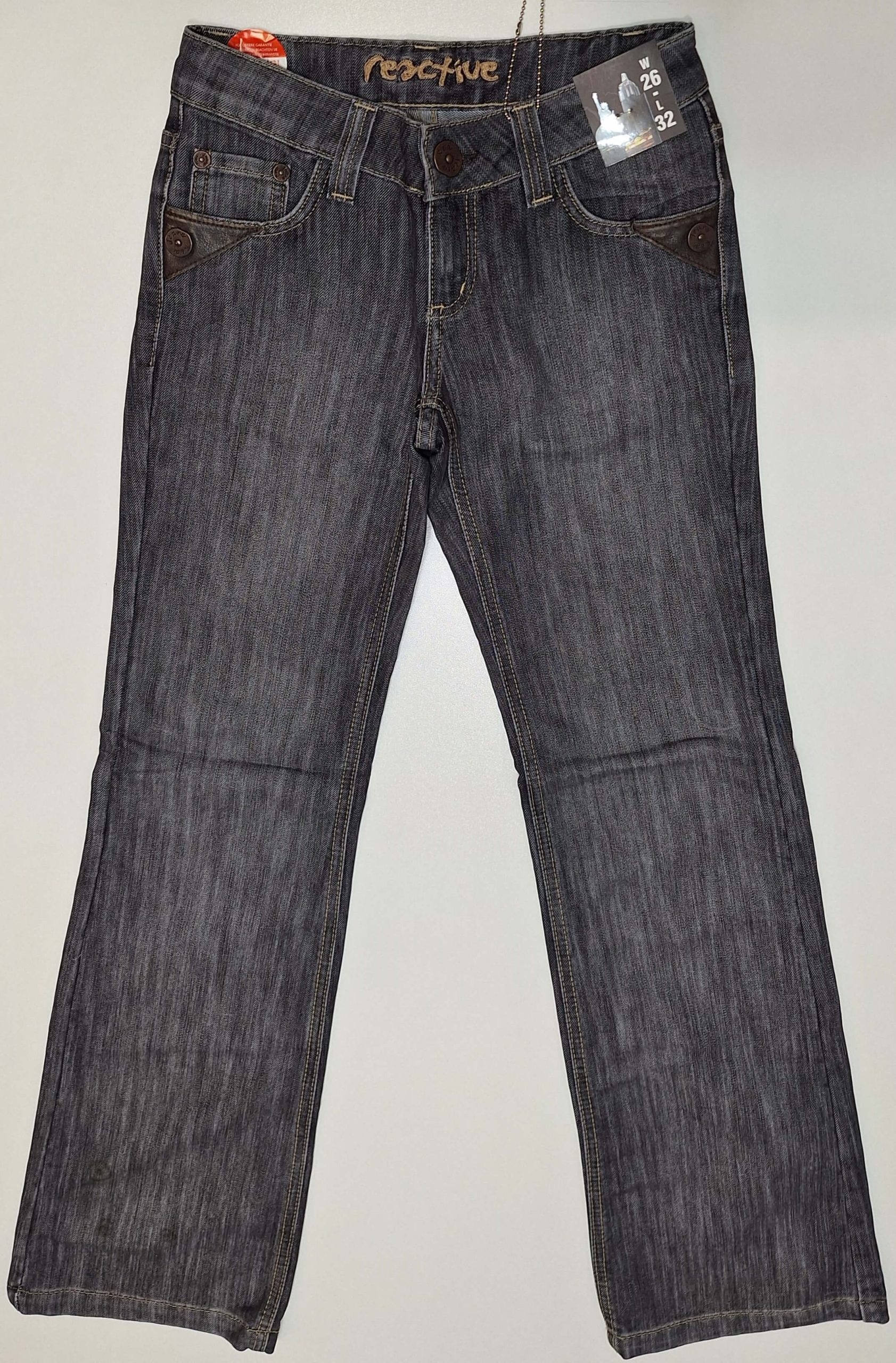 Spodnie jeansowe damskie z lekko rozszerzanymi nogawkami, firma Reactive, niski stan, (biodrówki), wysokiej jakości bawełna 100%