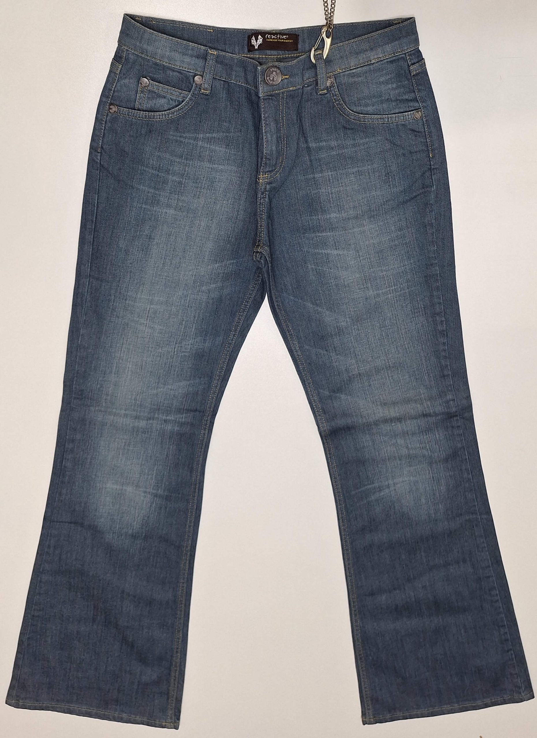 Spodnie jeansowe damskie z lekko rozszerzanymi nogawkami, firma Reactive, niski stan, (półbiodrówki), wysokiej jakości bawełna 98%