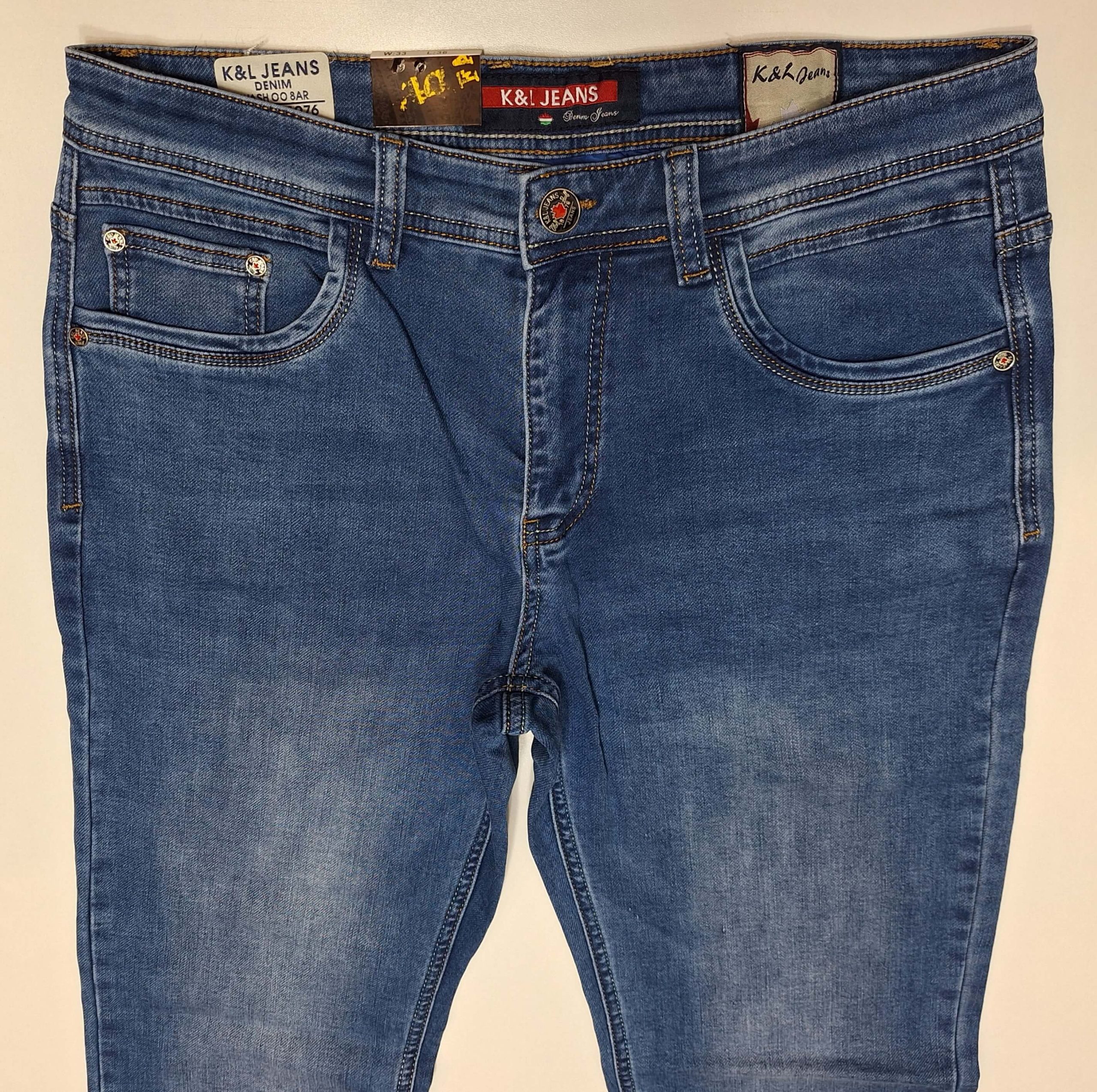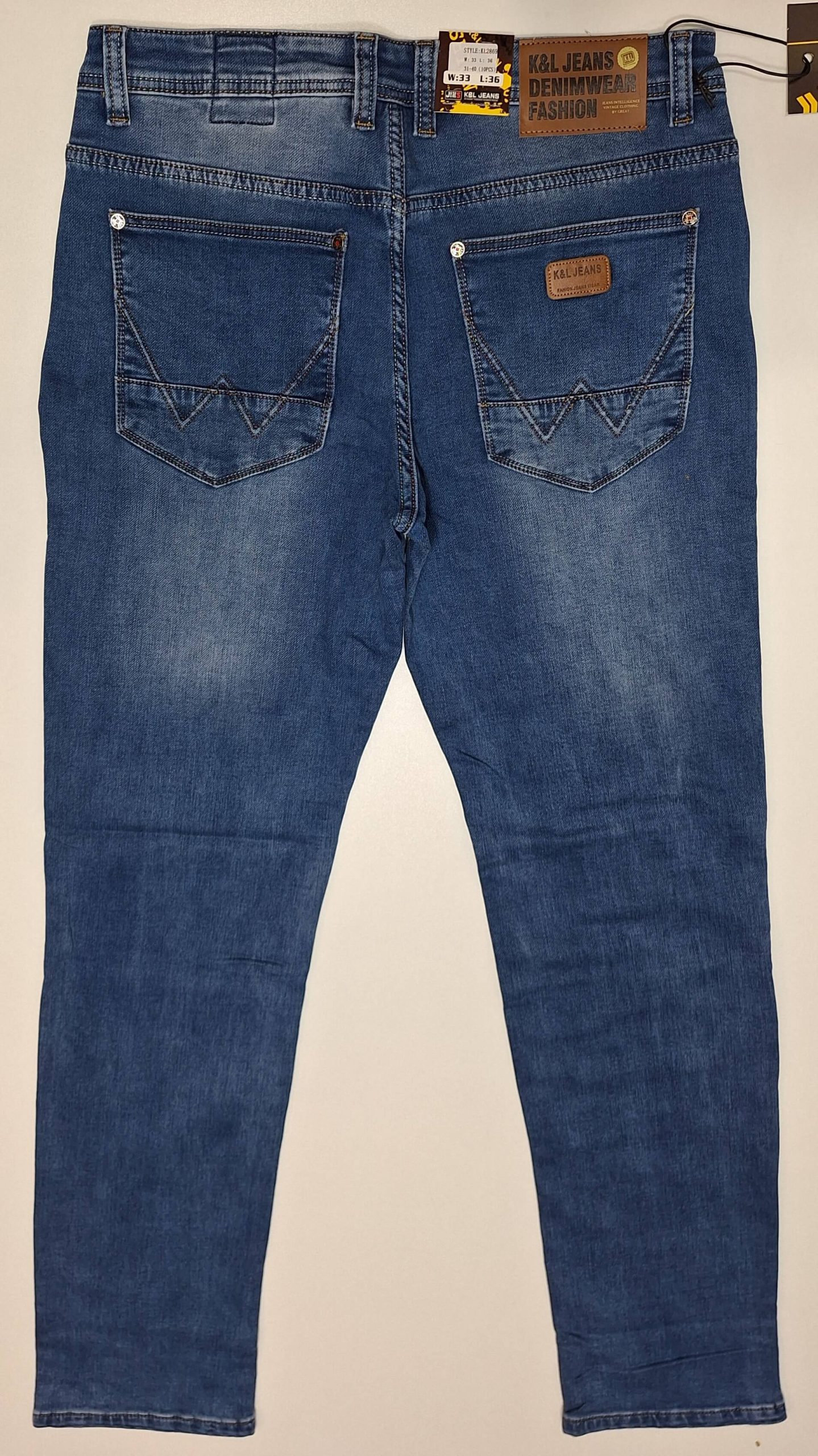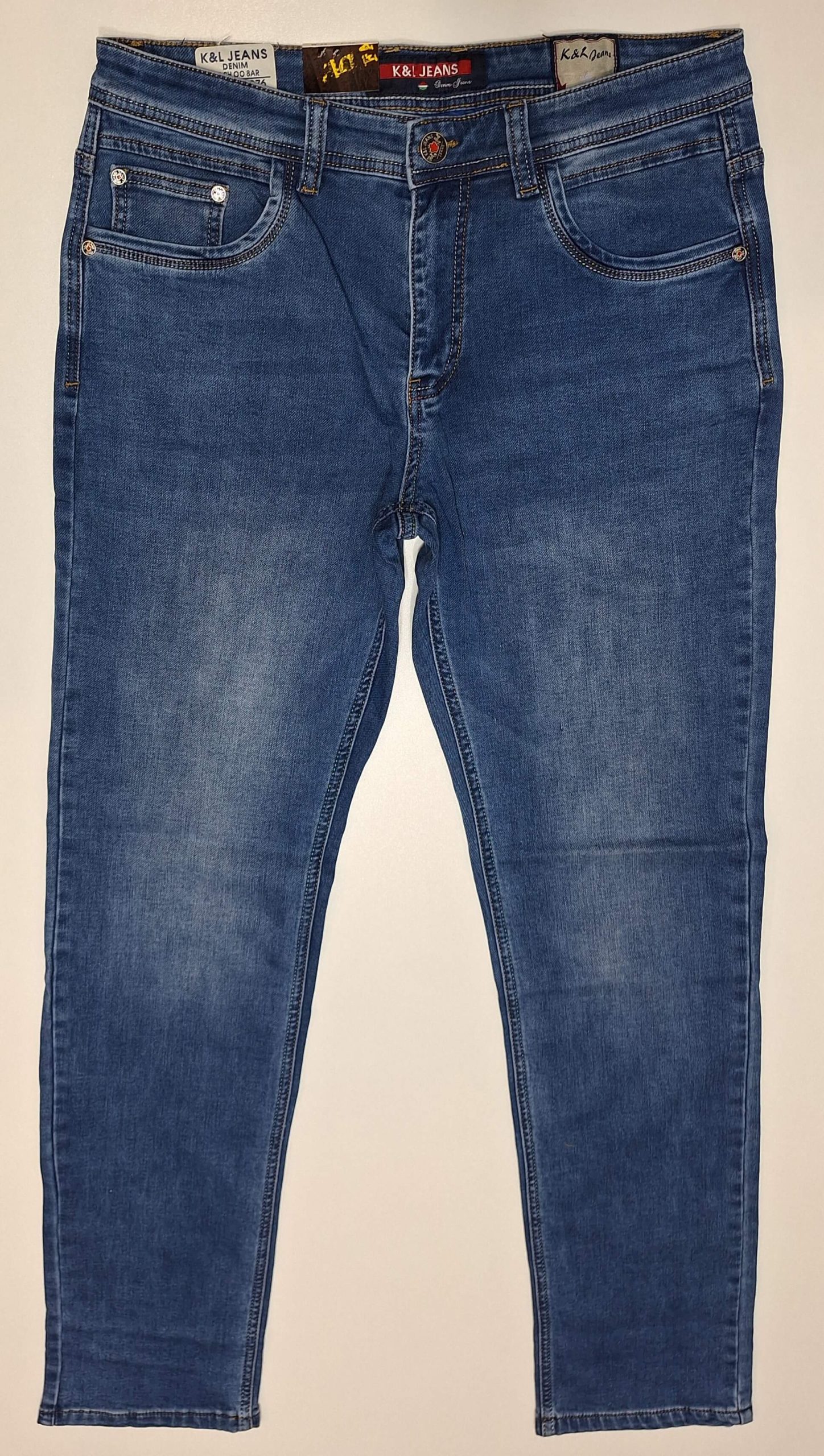 Spodnie jeansowe męskie firmy K&L Jeans, prosta i dość wąska nogawka, materiał elastyczny, długość 36 cali.
