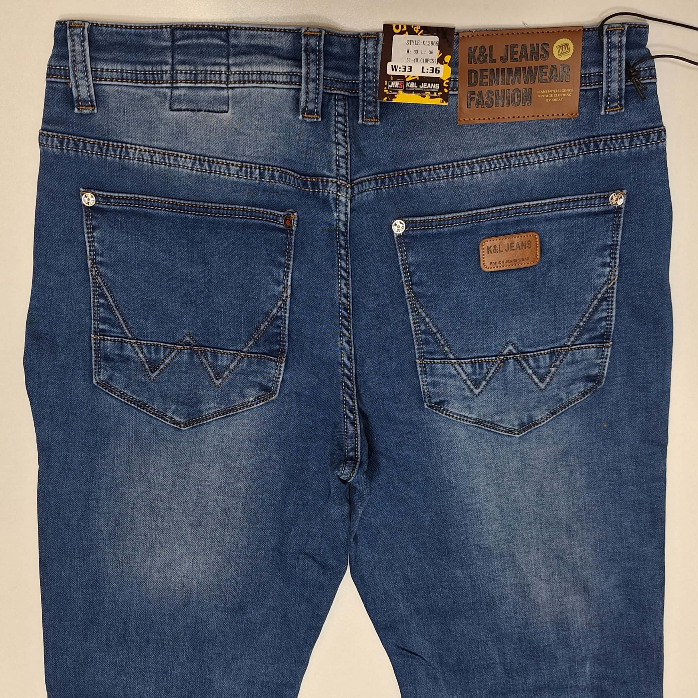 Jeansy męskie niebieskie elastyczne proste długie nogawki firma K&L Jeans model KL2869