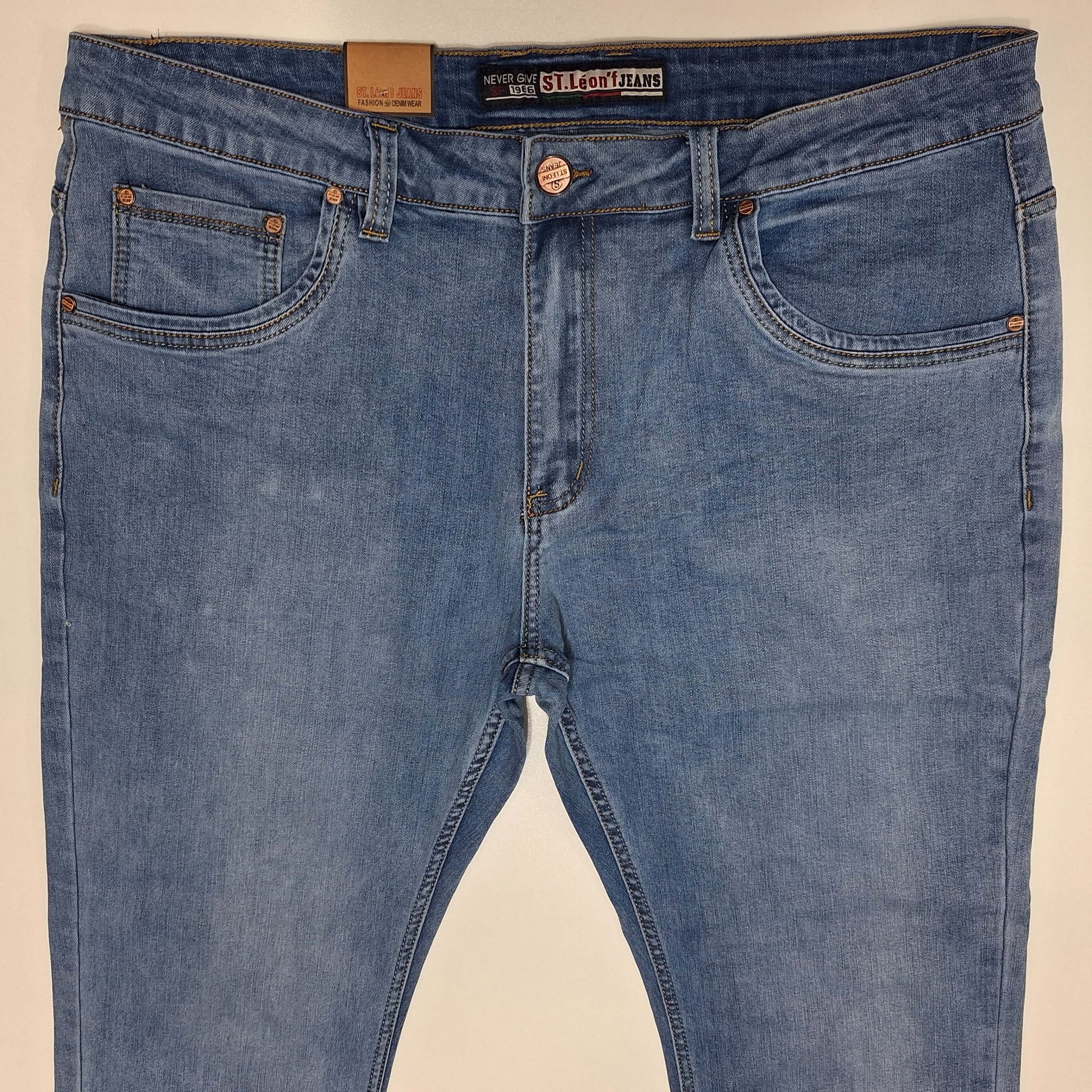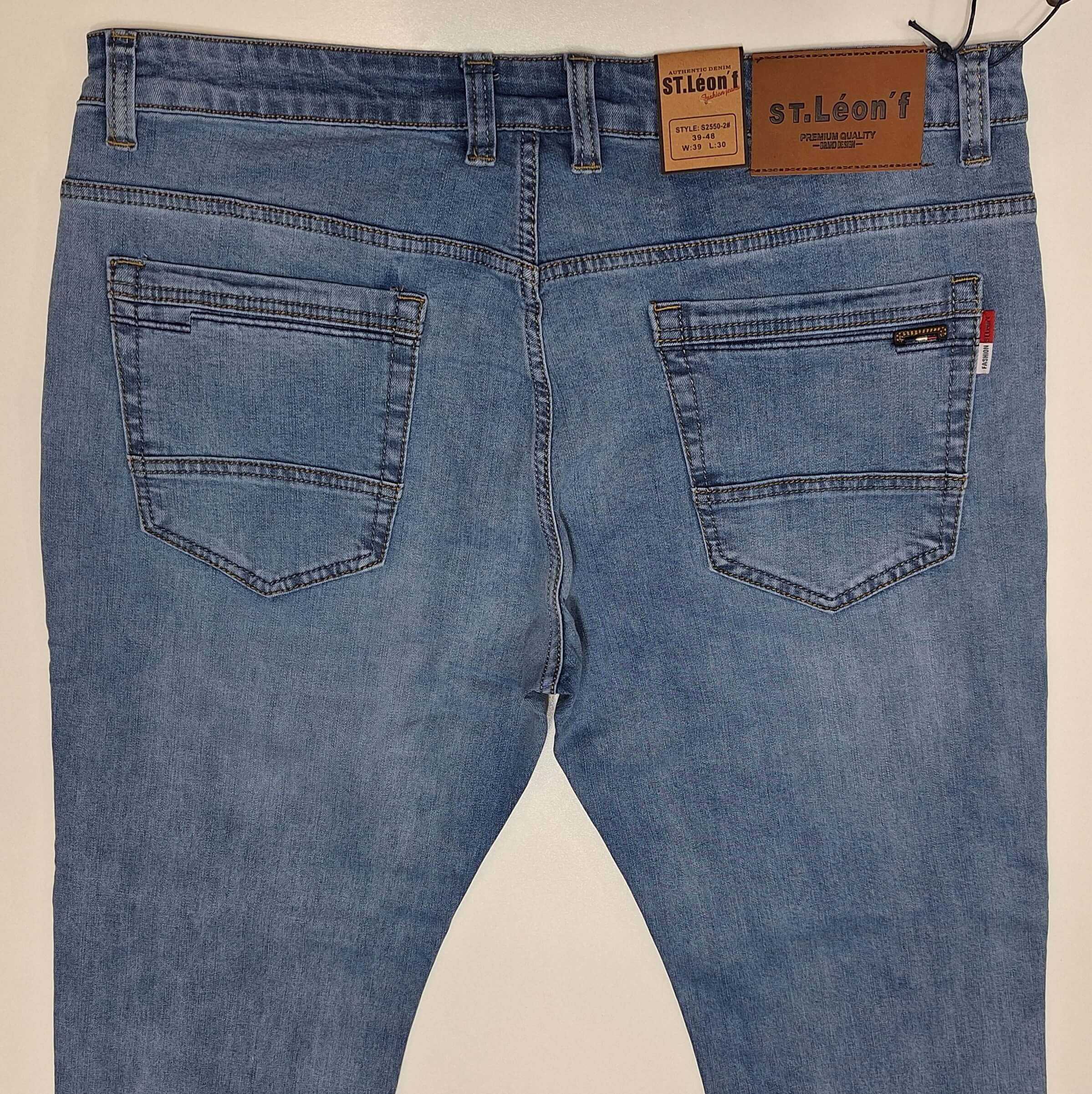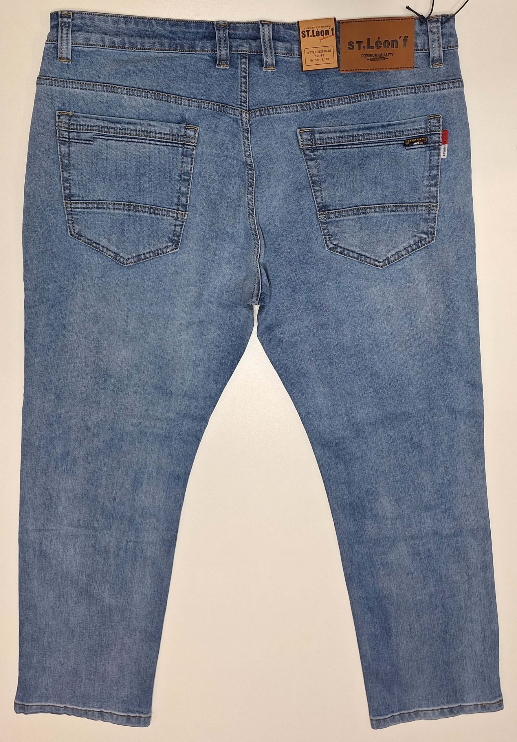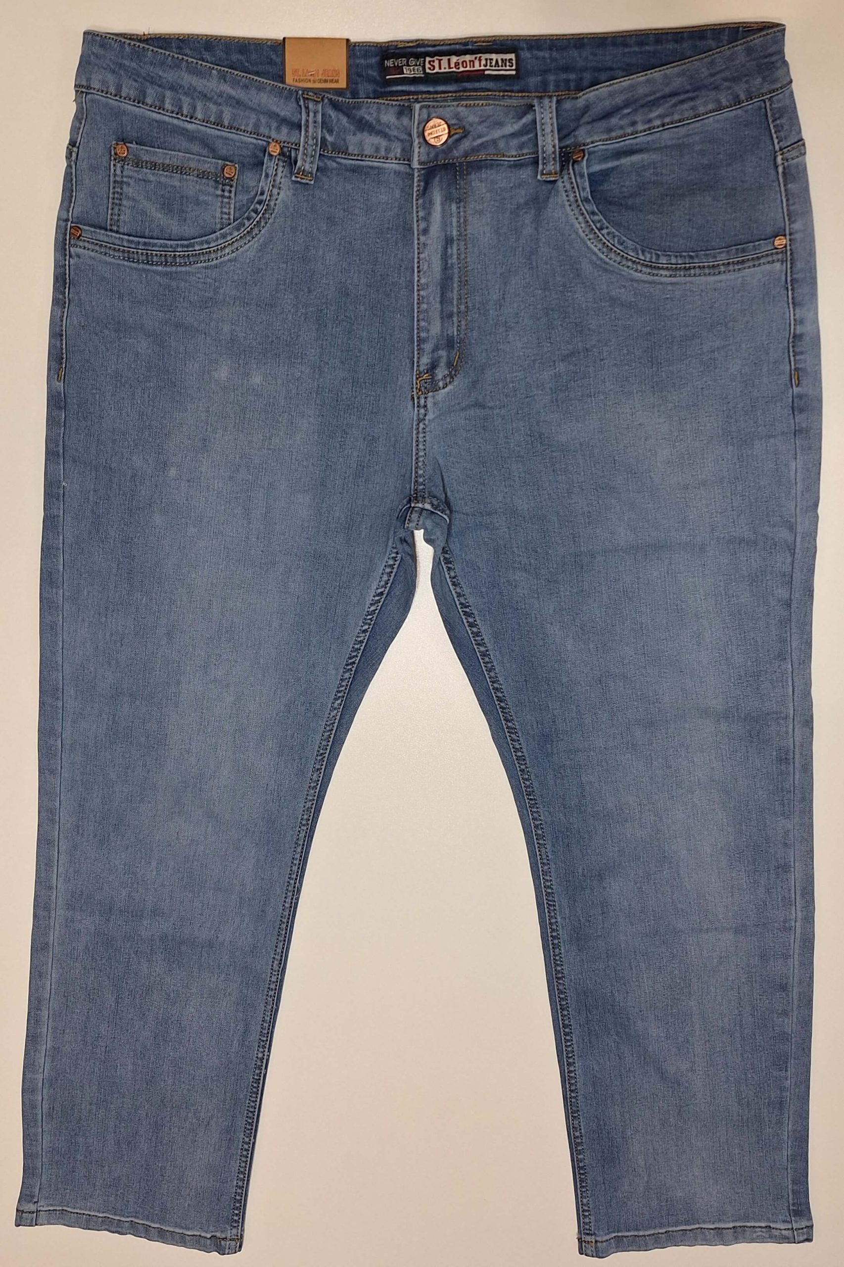 Spodnie jeansowe męskie firmy St Leon, prosta nogawka, jasne niebieskie dekatyzowane, materiał elastyczny. Większe rozmiary, od 39 do 48, długość tylko 30 cali.