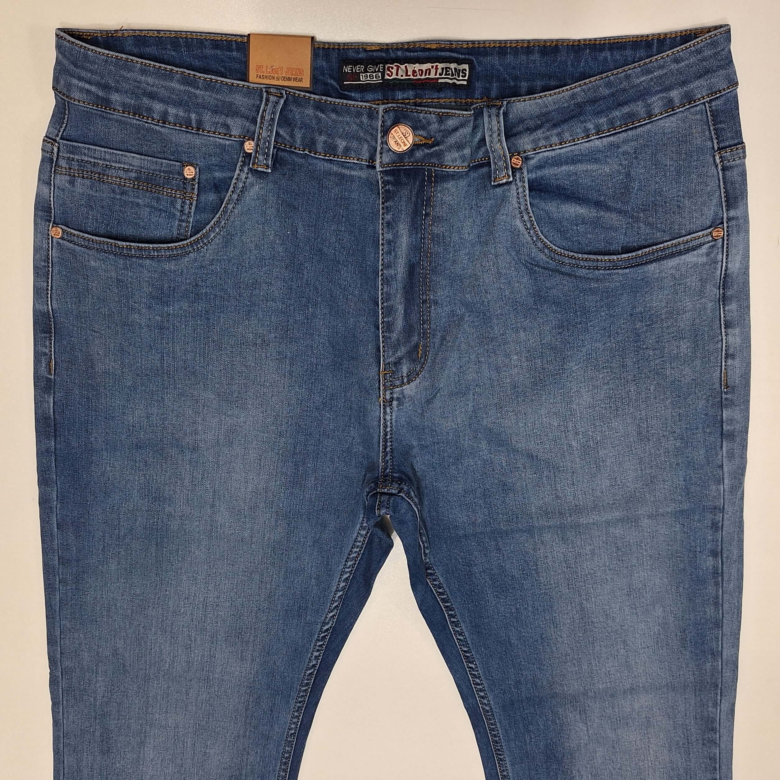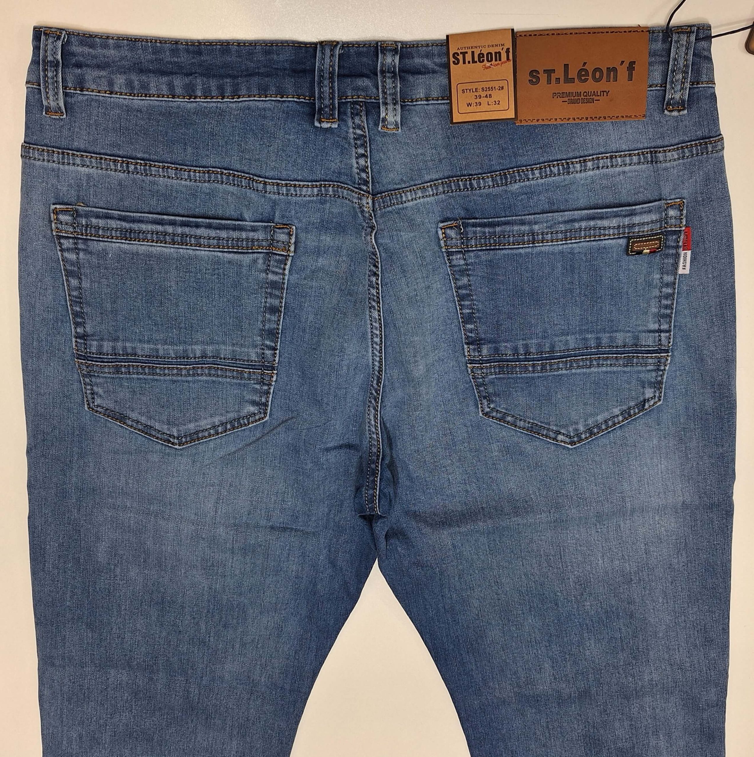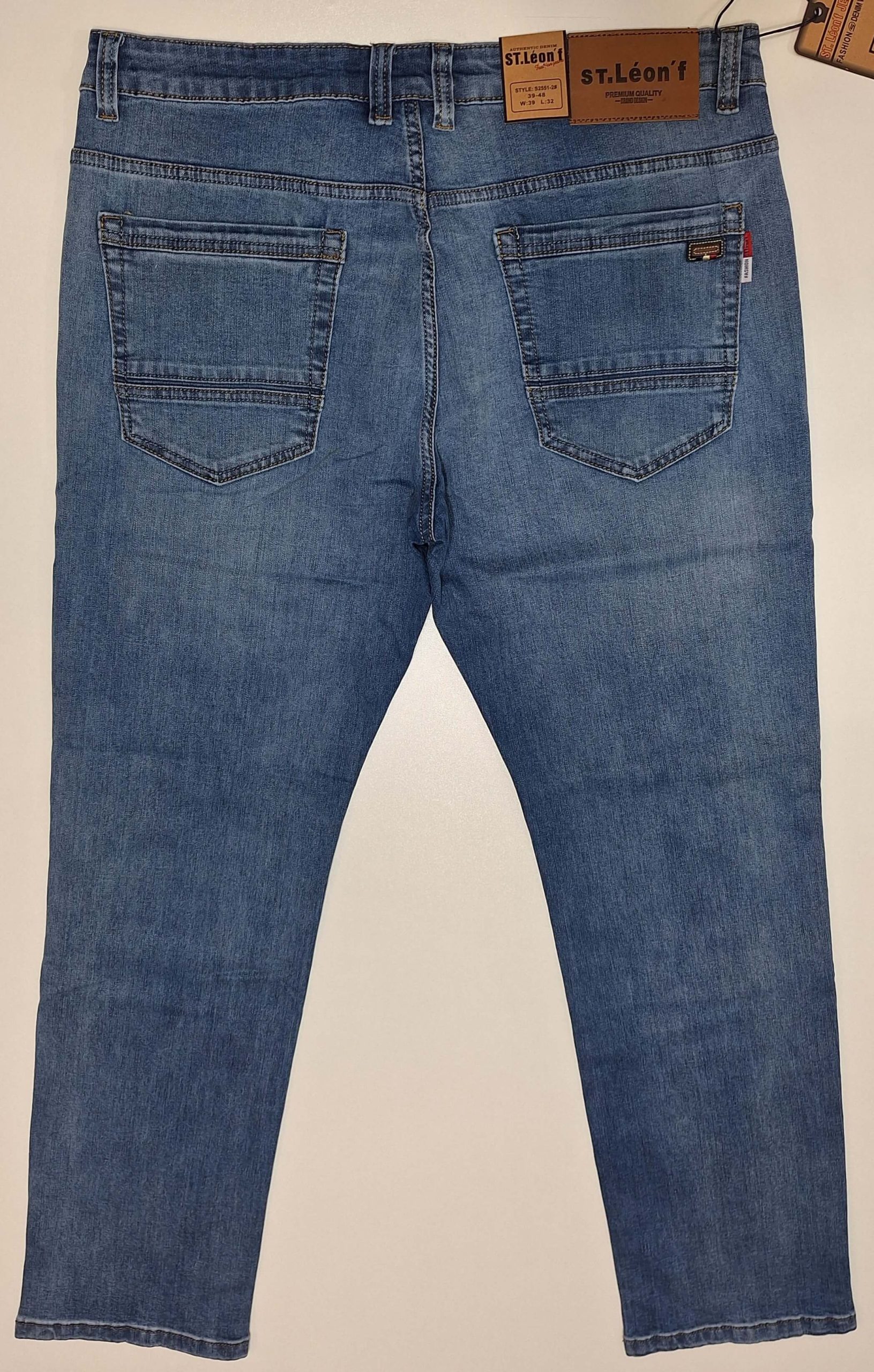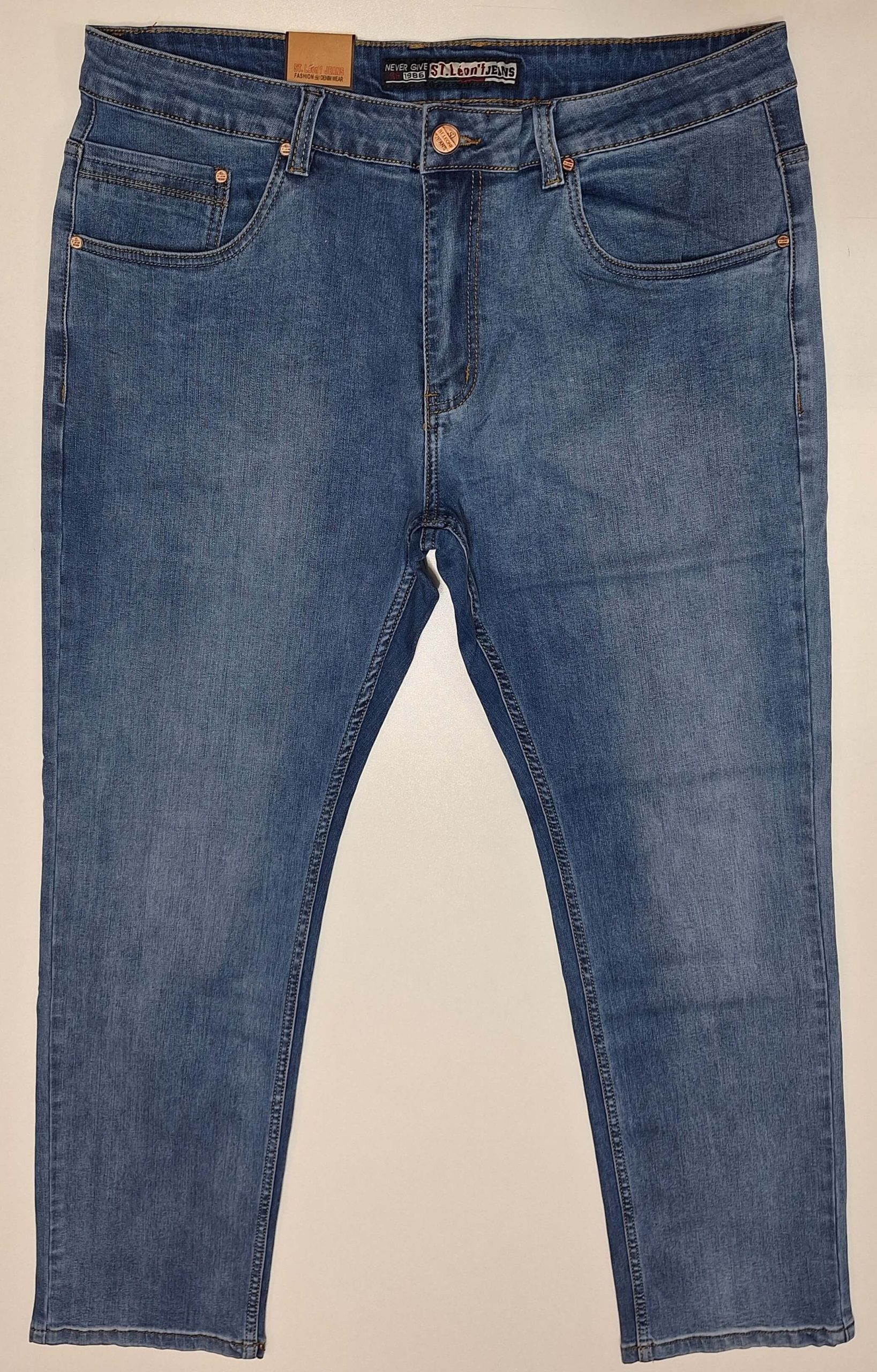 Spodnie jeansowe męskie firmy St Leon, prosta nogawka, jasne niebieskie dekatyzowane, materiał elastyczny. Większe rozmiary, od 39 do 48.