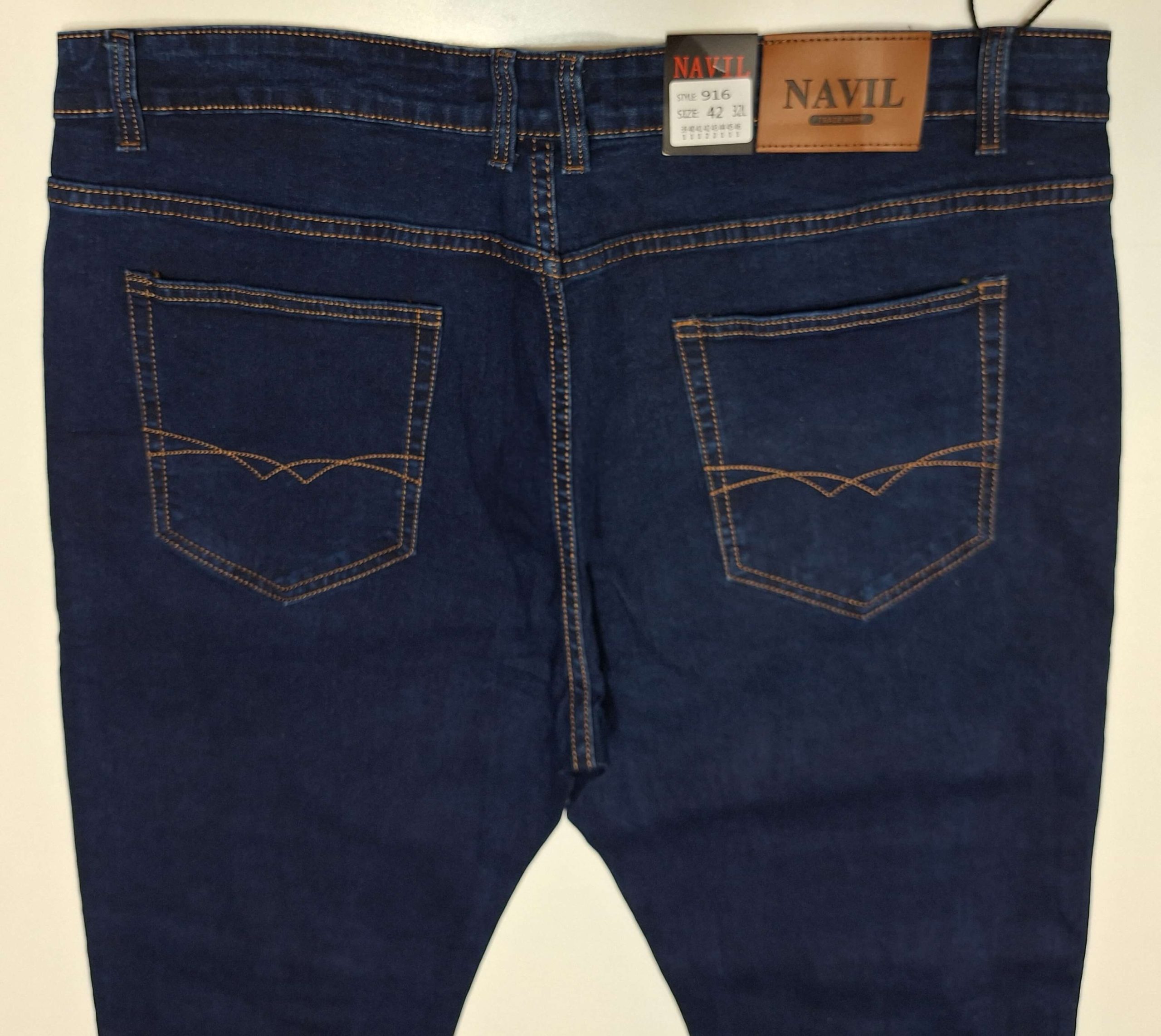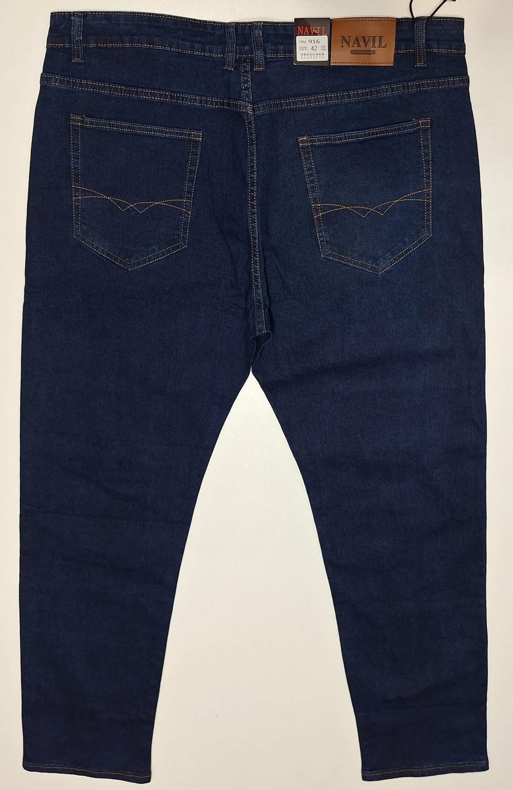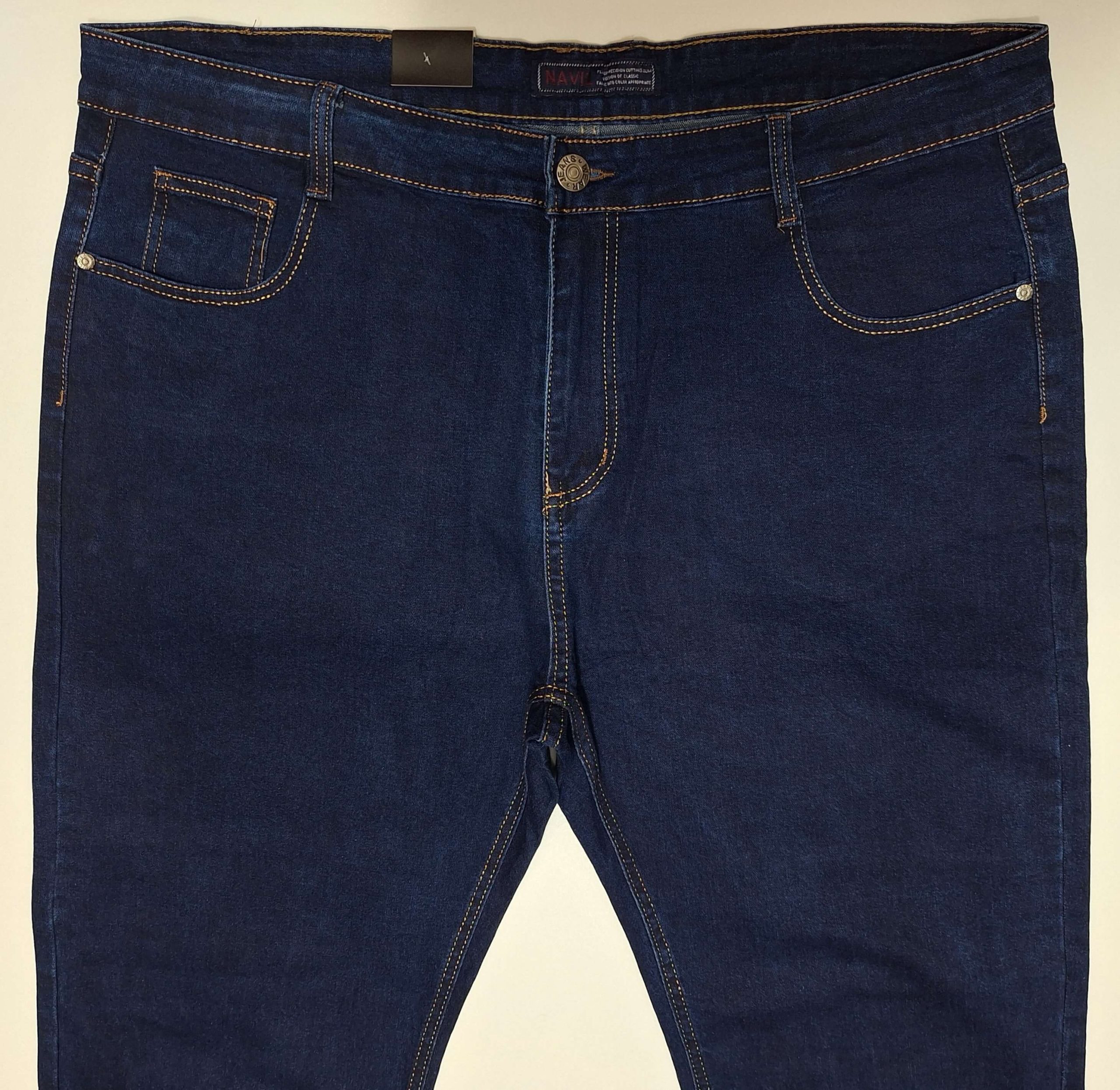 Spodnie jeansowe męskie niebieskie ciemne proste nogawki firma Navil model NA916