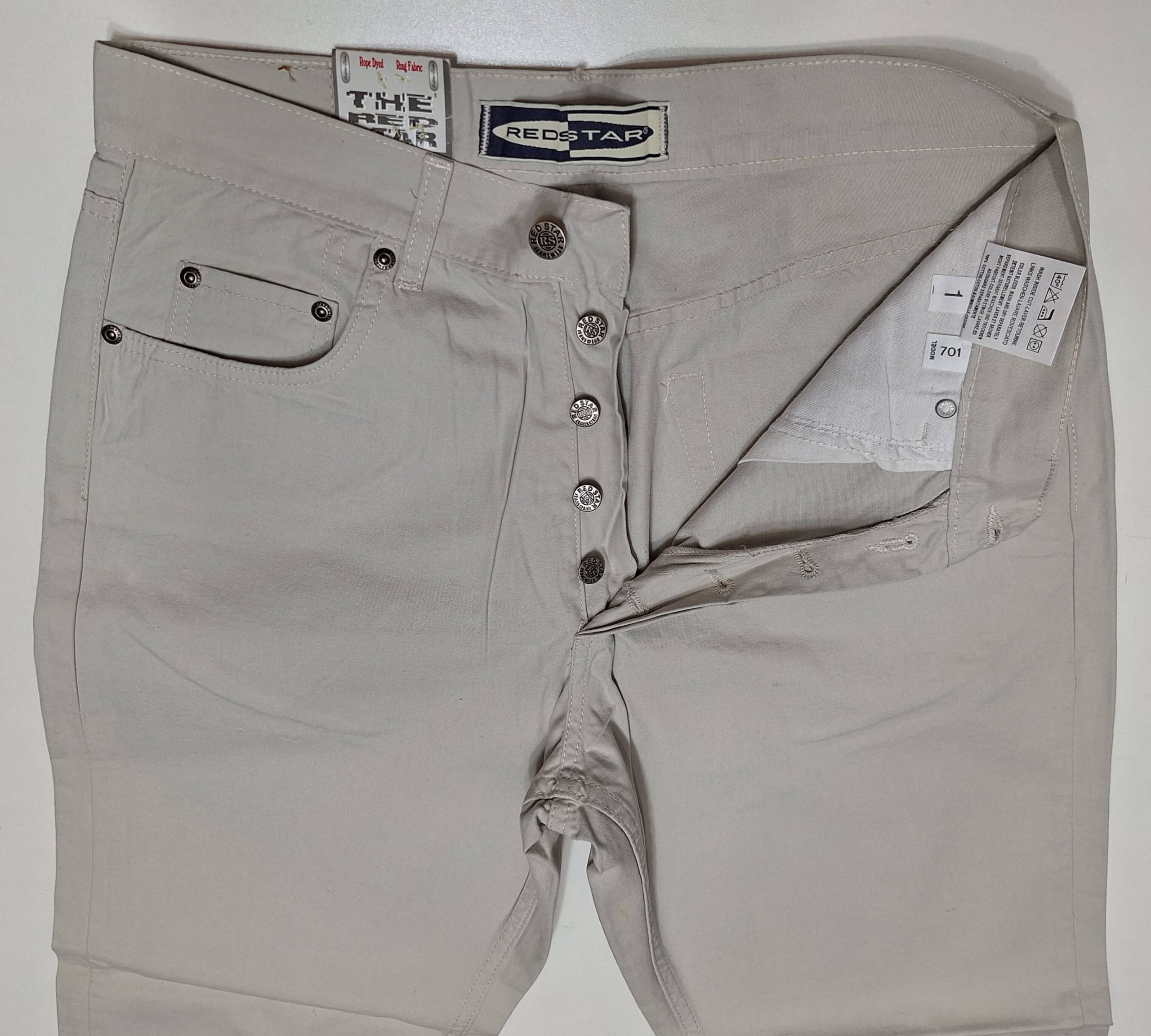 Spodnie szare letnie proste nogawki bawełna 100% firma Redstar, model – unisex. Rozporek zapinany na guziki, małe rozmiary.