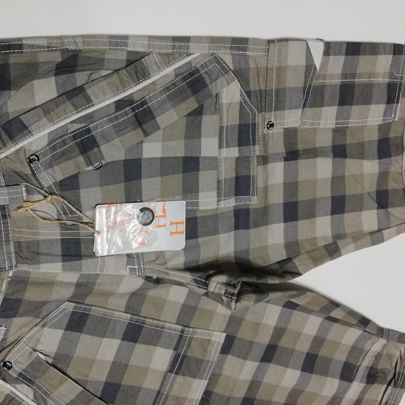 Spodnie męskie krótkie firmy OHH, kolorowe w szaro białą kratkę, kieszenie na nogawkach, materiał bawełna 100%. Został tylko rozmiar L.
