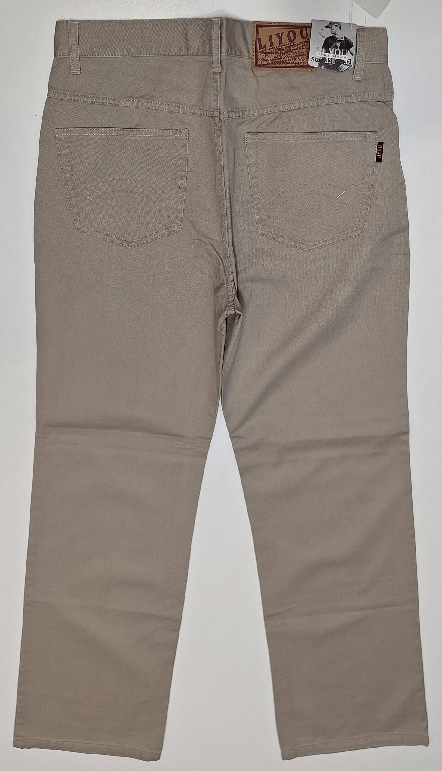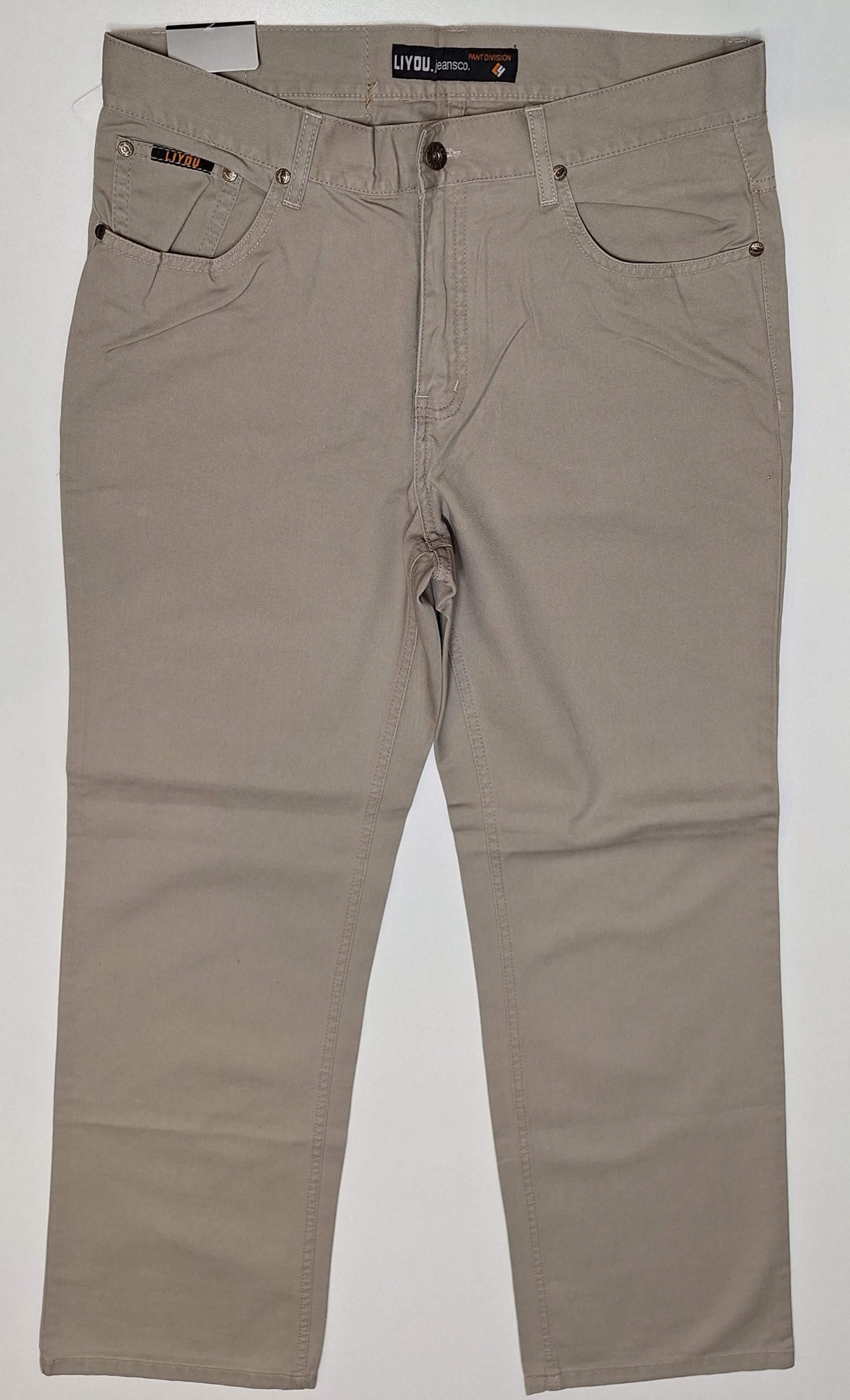 Spodnie męskie na lato, kolor beżowy firma Li You, prosta szeroka nogawka, wysokiej jakości bawełna 100%.