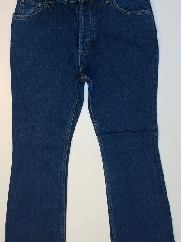Jeansy damskie firmy Redstar, wysoki stan, rozszerzana nogawka, rozporek zapinany na guziki, gruba solidna bawełna 100%, materiał nie jest elastyczny.