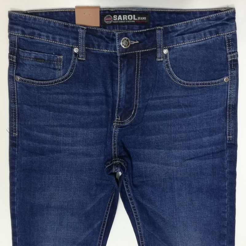 129.00 zł Pierwotna cena wynosiła: 129.00 zł.119.00 złAktualna cena wynosi: 119.00 zł.Spodnie jeansowe ciemno niebieskie męskie firmy Sarol, prosta nogawka, elastyczne. Nogawka 36 cali, czyli 89 cm mierząc od kroku.